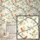 Cute Springtime Red Green Birds on Cream Wallpaper