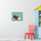 16X20 Poster of a Brown Squirrel Holding a White Coffee Mug with a Pink Heart and Steam with Hearts on Teal Background. This whimsical woodland art makes a fun gift for coffee lovers. Visit Jenn's Doodle World for more animal designs and products featuring this caffeinated squirrel.