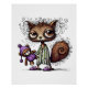 This adorable cartoon squirrel is the picture of cozy comfort, with oversized, sleepy brown eyes that radiate warmth and innocence. Dressed in green-striped pajamas and purple slippers, it exudes a charming, playful vibe. Clutched in its tiny paws is a soft, fluffy teddy bear, adding an extra touch of sweetness to its already heart-melting appearance. Perfectly designed for fans of all things cute and whimsical, this little squirrel is sure to bring smiles wherever it appears!