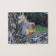 This cute puzzle features a gray squirrel in a tree eating a mini pumpkin. The bark of the tree and the out-of-focus background make this puzzle a bit of a challenge.