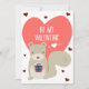 "Be my Valenitne" greeting card with a big heart and a cute squirrel holding a present