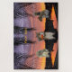 Personalize (add your text or change the images) of three cute wild Florida animals, Eastern gray squirrels at Sunset with reflection photography, designed on Zazzle Puzzle. Florida wildlife. Florida wilderness. Florida nature. Sunset in Florida. Palm leaves silhouettes. Rodents.