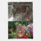 This kitchen towel is made so you can hang it on your oven handle or a towel bar and still have a complete picture. One is a cute squirrel sitting on a pine tree branch eating a nut, the other is an adorable squirrel sitting among the flowers eating a nut.