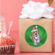 Cute St. Bernard in Santa Hat on Green Classic Round Sticker