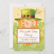 A cute and cheerful St. Patrick’s Day party invitation featuring an adorable leprechaun holding a festive sign, surrounded by soft green shamrocks and warm watercolor textures. Perfect for Irish-themed parties, family celebrations, pub events, or St. Patrick’s Day gatherings. This charming design adds a fun and lucky touch to any celebration.