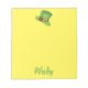 A cute St. Patrick's Day themed notepad, this design features a yellow background with a green hat using a St. Patrick's Day clipart, underneath is a place to insert your name.