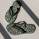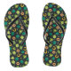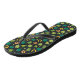 St. Patrick's Day patterned flip flops in festive green, orange, yellow and off-black feature a fun, crazy pattern of four leaf clover shamrocks, lucky horseshoes, leprechaun hats, green beer and orange Irish kisses. A perfect compliment to your green beer at St Paddy's Day parades and parties!