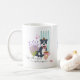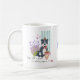 We have a very special bond with our lovable pets and it’s wonderful when they’re there to share things with us. Like when you’re relaxing with a cup of coffee and your furry friend is sitting by your side. This cute Staffordshire Bull Terrier looks very dapper in his hat and sits loyally by during a coffee time moment. The elegant script typography has the awesome quote Coffee with A Friend Is Like Capturing Happiness in Cup, “friend” of course refers to the Pet pooch! Background elements such as stripes, hearts and splashes complete the design on the front. In the center front part of the mug is a simple circular lilac motif with symbolic paw prints, coffee cup and heart. The background color on the front and the back can be changed to a different color if you so wish. Great for a gift too!