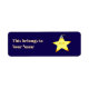 Add a touch of charm to your belongings with this customizable cute star label design. Featuring a smiling yellow star wearing a fun nightcap against a dark blue background, it's perfect for kids, students, or anyone who loves whimsical designs. Personalize it with your name to make school supplies, books, or personal items uniquely yours. Ideal for children, daycare items, classroom use, or back-to-school gear. This adorable design appeals to parents, teachers, and caregivers looking for a playful yet functional label option.
