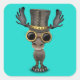 This unique design features a baby Moose with a steampunk top hat and goggles. The cute little moose is looking forward with its head slightly tilted giving it a curious look. The over sized head and small body along with the details in the fur and steampunk accessories create a beautiful combination of a cartoon and realistic look. The brass and leather accents in the hat and goggles give this adorable moose design a steampunk look