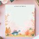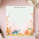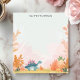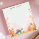 Roar into fun with this adorable, personalized notepad! A cute, pastel-colored stegosaurus dinosaur wanders through a prehistoric landscape of ferns and foliage. This playful design is perfect for kids and dinosaur lovers of all ages. Add your custom text to make this notepad uniquely yours. Ideal for notes, drawings, or to-do lists.