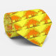 This funny, whimsical, animal necktie has a cartoon Stegosaurus dinosaur. It is yellow and orange, repeated on a yellow background.