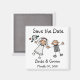Save the Date magnets with a cute cartoon stick figure bride and groom! Customize with the names of the bride & groom, and the wedding date in the space provided.