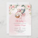Cute stork delivering a baby girl floral invitation