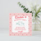 Square with an elegant strawberry theme. Includes a lace detail, handwritten fonts, and a ribbon bow. Has a tea party or picnic vibe. Great for a girl's or young adult birthday, Galentine's Day, Valentine's Day, girlfriend get-together, or even a baby shower. A strawberry palette of ruby red, a pastel pink / blush pink, muted mint green / sage, and tablecloth white.
