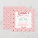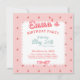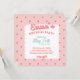 Square with an elegant strawberry theme. Includes a lace detail, handwritten fonts, and a ribbon bow. Has a tea party or picnic vibe. Great for a girl's or young adult birthday, Galentine's Day, Valentine's Day, girlfriend get-together, or even a baby shower. A strawberry palette of ruby red, a pastel pink / blush pink, muted mint green / sage, and tablecloth white.