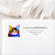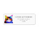 This customizeable typography and script return address label design* features a striped multicolored rainbow cat face.