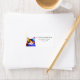 This customizable typography and script address label design features a striped multicolored rainbow cat face.