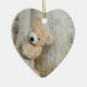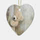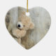 Ornament with a darling photograph of a cute stuffed bear, standing by a rustic wooden wall / backdrop.