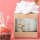 Stickers with a darling photograph of a cute stuffed bear, standing by a rustic wooden wall / backdrop.