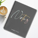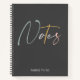 A cute, stylish notebook. With a dark gray background, the word Notes is in script typography in colors of light green, gray, yellow and pink. Underneath, in modern light gray typography it reads "things to do".
