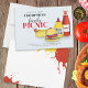 Whimsical hamburger, hotdogs, ketchup, and mustard. A fun picnic, barbeque, or cookout invitation. This a great invitation for family reunions, birthday parties, and any outdoor parties. With a cute and fun design with a gingham red tablecloth pattern.