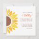 The design features a drawn orange-yellow sunflower with the child at the center of the flower.