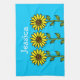 Cute Sunflowers Illustration Personalized Name Kitchen Towel