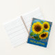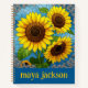 A vibrant sunflower stained glass illusion pattern notebook with your name in a unique quirky typography. Perfect for back to school, or personal journaling. You can select this in soft or hardcover for extra durability. Bold yellow gold on blue.