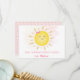 This cute birthday thank you card features a sweet sunshine with a pink watercolor background and faux gold foil accents.