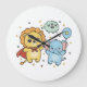 Cute Superhero Lion and Elephant Friends Cartoon Large Clock