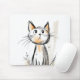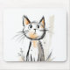 Smiling adorable gray and white cat with orange ears sitting among a few sparse plants is looking around cautiously up at a mouse ornament. This is a perfect gift for a cat lover! The soft colors and sweet expression might melt your heart!