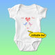 A soft design for a baby that feels very warm and loving. Here are two little birds in pink and blue, with a cloud of red hearts above them. The text is fully customizable and reads "Cute", "Sweet", "Love".