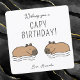Cute Swimming capybaras illustration birthday card design with typography expression: "Wishing you a capy birthday!". The capybara illustration is an original digital art created by @artbybiyan.