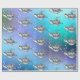 Cute, swimming, sea turtles pattern on a gradient background that has three colors of aqua, purple, and blue. Kids would especially love a birthday present wrapped in their favorite sea turtle image.