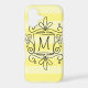 Cute swirly monogram iPhone case | yellow stripe