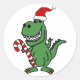 Cute T-rex Dinosaur in Santa Hat with Candy Cane Classic Round Sticker