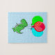 Cute T-Rex Flying With Balloons In Blue Sky Jigsaw Puzzle
