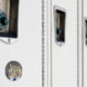 Cute tabby cat brown, green eyes, blue tie fridge magnets. Trendy, cool, modern, chic. Kitchen home decor for kitty cat lovers. Image copyright Marg Seregelyi Photography.