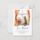 Introducing a beautifully crafted fall moving announcement card designed to capture the essence of new beginnings and the enchanting spirit of autumn. This delightful card features a charming watercolor illustration of a cute tabby cat perched on a windowsill, surrounded by a vibrant bouquet of orange seasonal flowers and lively orange curtains. Together, these elements create a whimsical and warm portrayal of the fall season.