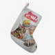 Perfect! Exactly what I ordered! I uploaded a picture of my blue chow, and the screen print was incredible. the back side of the stocking was the red and black checkered print. my puppy's name was also printed on the cuff of the stocking. PERFECT! Highly recommend this product! My puppy's name was screen printed onto the cuff of the stocking, the font was perfect!