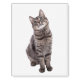 An adorable gray striped domestic shorthair tabby cat looking up, cut out on a white background