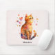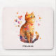 Mousepad with an adorable watercolor illustration. An orange tabby cat looking friendly and happy with hearts swirling around.