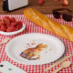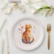Paper plates with an adorable watercolor illustration. An orange tabby cat looking friendly and happy with hearts swirling around.