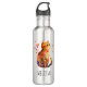 Water bottle with an adorable watercolor illustration. An orange tabby cat looking friendly and happy with hearts swirling around.