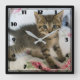 Cute Tabby Kitten Looking Surprised Square Wall Clock