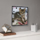 A clock with a funny photograph of a tabby cat. Hair on his back slightly raised and he has a surprised expression on his face. Cute and adorable. Makes you smile. :)