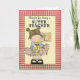 Cute teacher's appreciation card, with country primitive graphics of a little school girl, with a cream and red checkered frame around the outside edge. Black graphic text, on the front reads, Thanks for being a Super Teacher. Personalize the black text, inside the card, to read what you want.