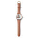 I only have one complaint. I ordered the watch with clear case and strap, and what was sent was white case and strap. I'm going to keep it because 1) it looks very nice in white, and 2) it would take too long to get a replacement made and sent in time for my occasion. Aside from the mix up with the color, the watch does look very good in white. The purple dial is actually sparkly which did not show in the online images. That was a nice surprise. If you like Swatch watches this is very similar to those. It's 33.6mm in diameter, 10.5mm thick, and 40.6mm lug to lug. Stainless steel case back says 3ATM/30m WR, so no swimming or showering or submerging this one. If you like Woodstock, this is a great choice.
