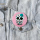 Cute Teal Day of the Dead Sugar Skull Owl Pink Button
